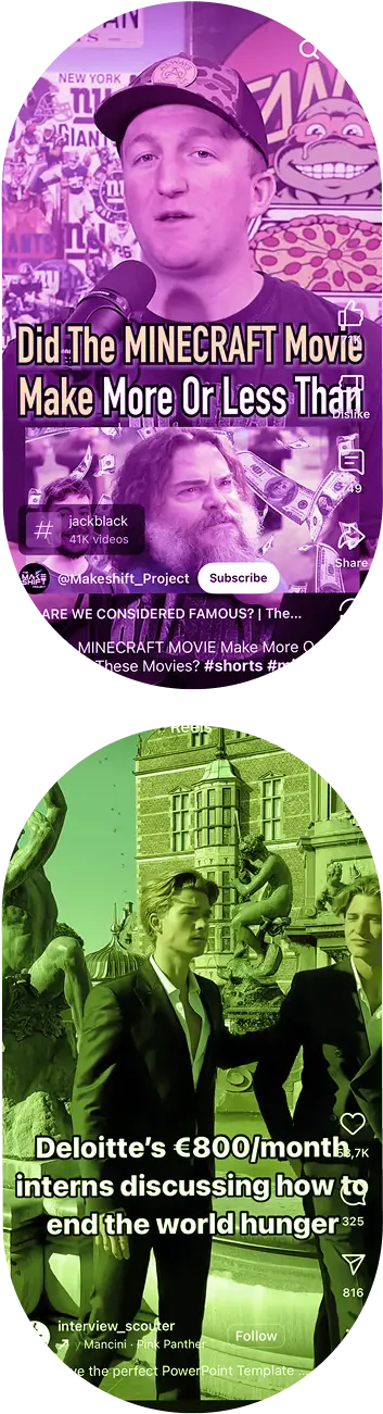 YouTube Shorts, Reels, TikTok — all formats welcome